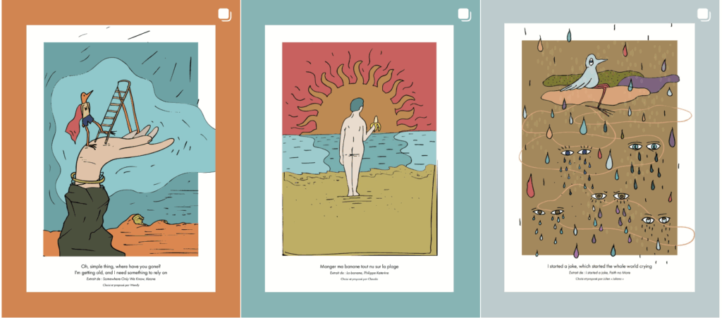 J’ai demandé autour de moi de m’extraire LA phrase d’une chanson aimée, pour l’emmener ailleurs… 😊